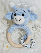 Häkelrasselgreifling "Süsses Eselchen" blau mit Wu